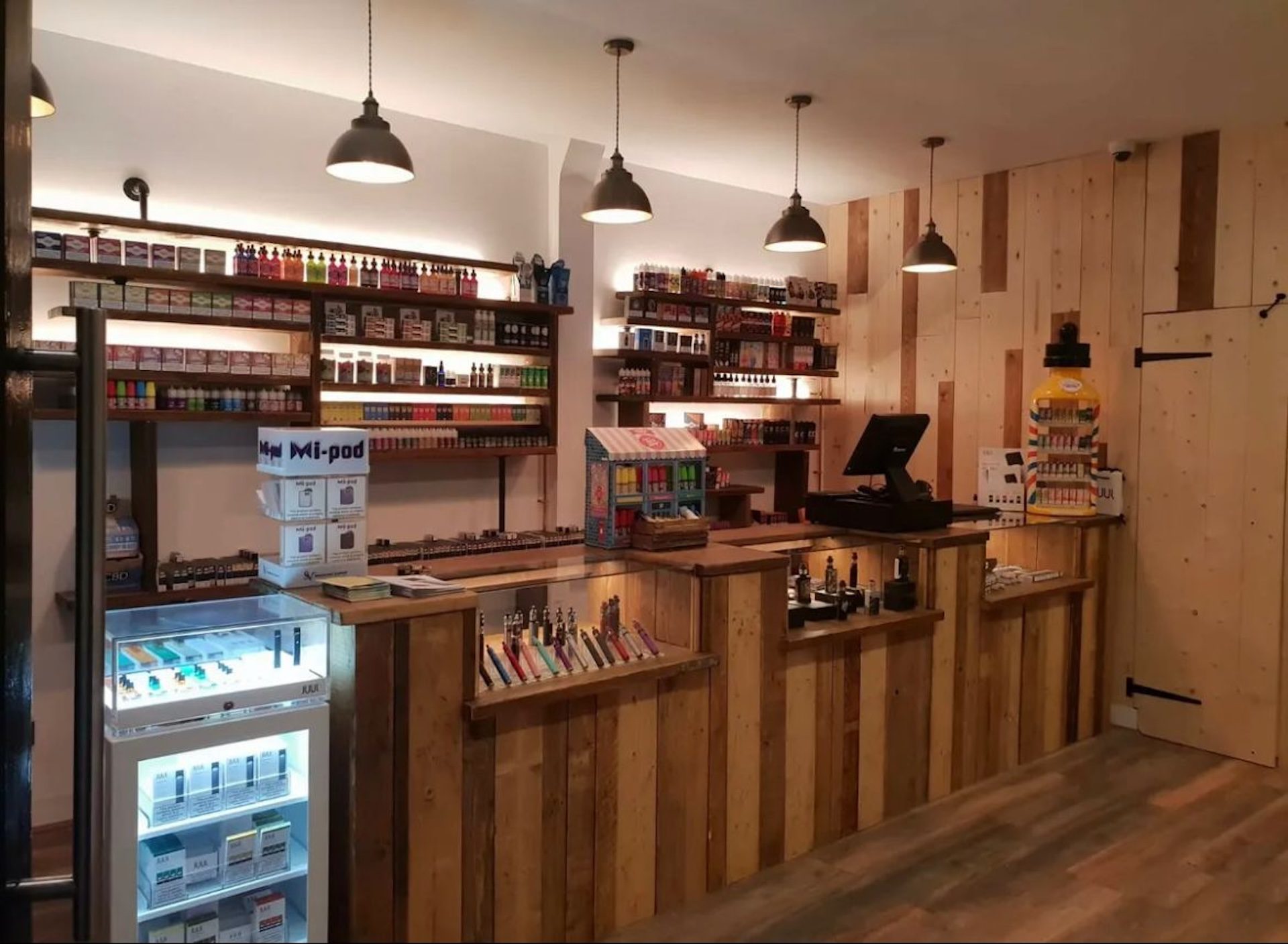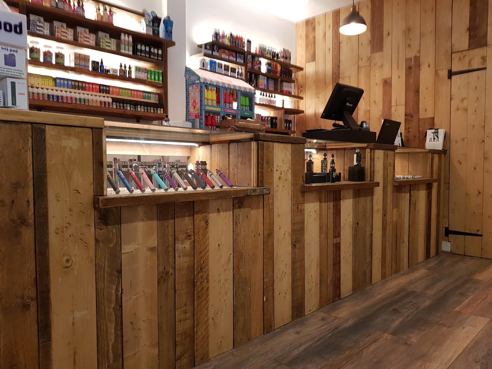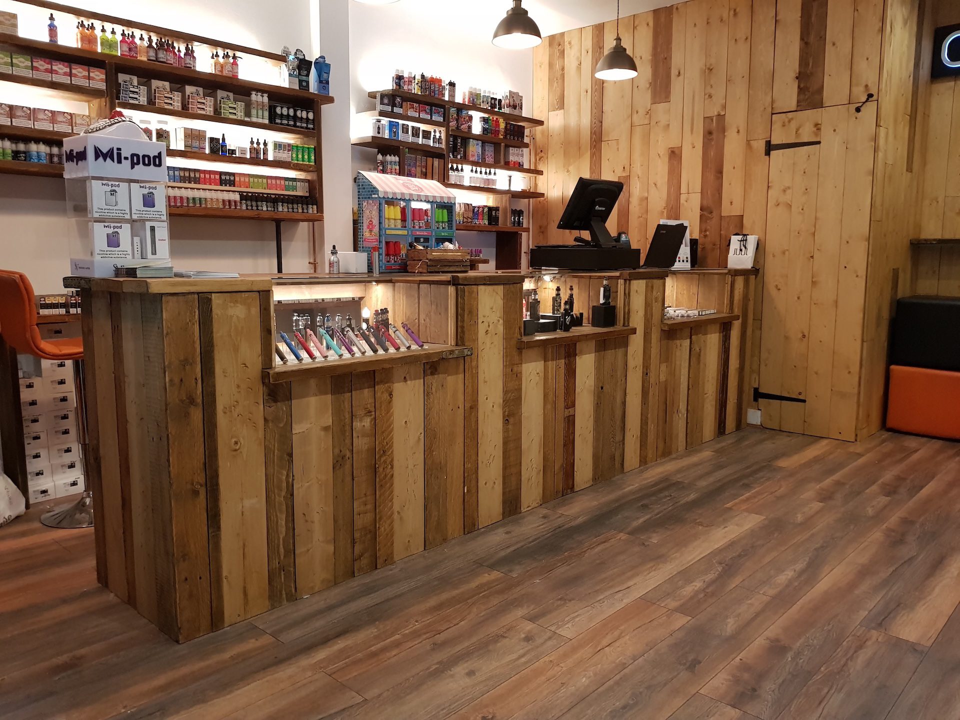 The counter and integrated display provide clarity at point of sale, while the material palette establishes a cohesive and recognisable identity.
