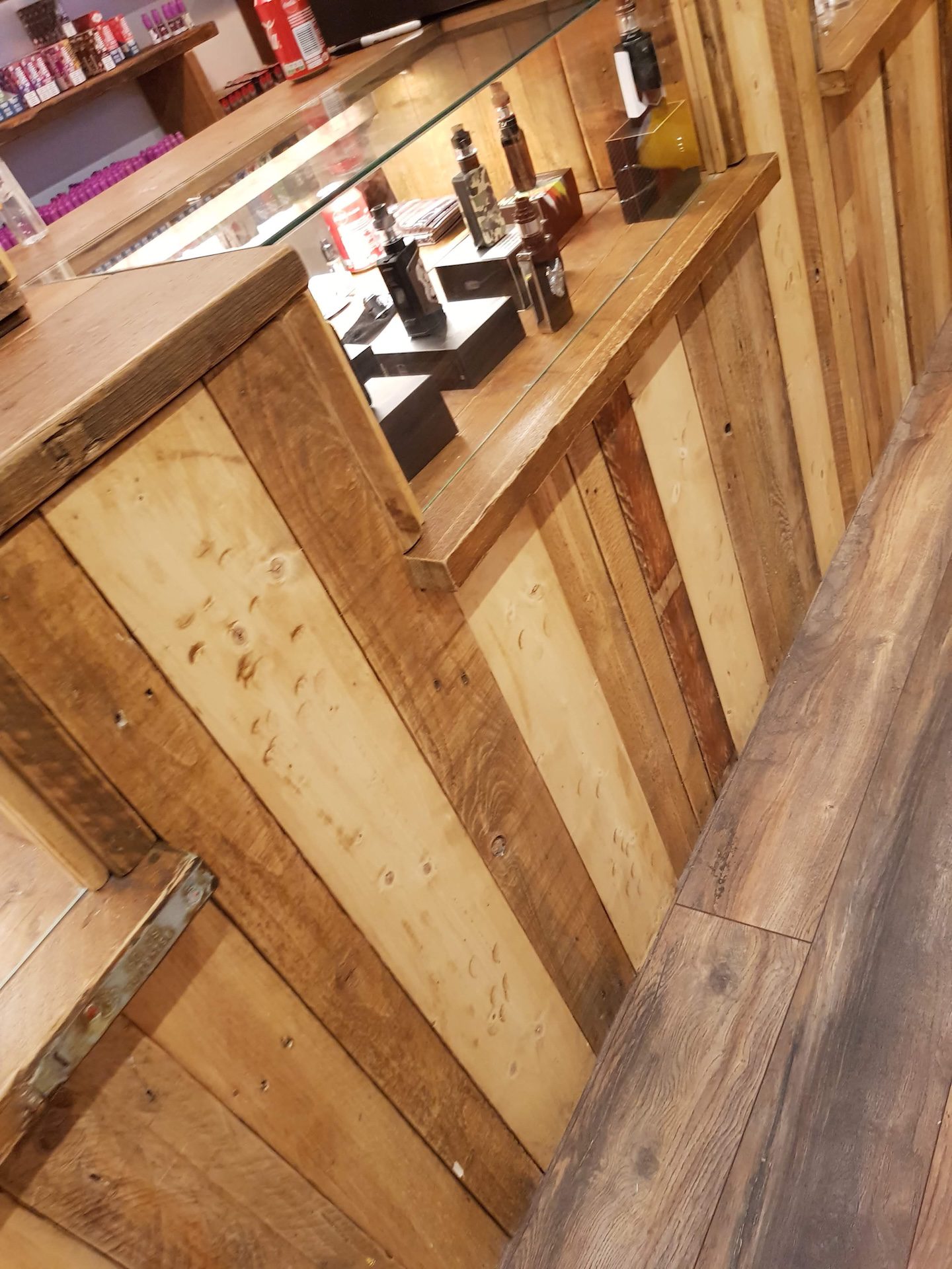A bespoke timber counter was introduced as the central feature, incorporating an integrated glass display to present products clearly at the point of interaction.